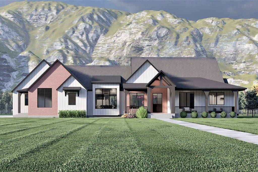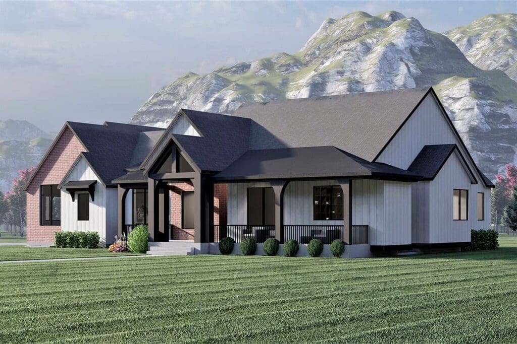 This 3,060-square-foot New American farmhouse floor plan is a perfect mix of style, function, and flexibility.