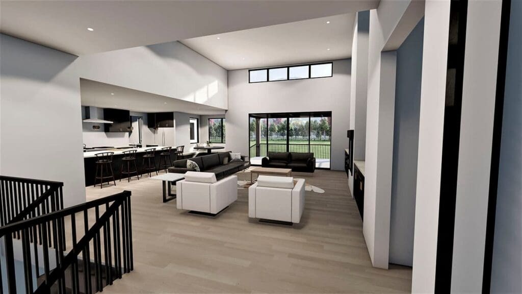 Its alignment with the great room and sliding doors ensures the flow between indoor and outdoor spaces feels natural.