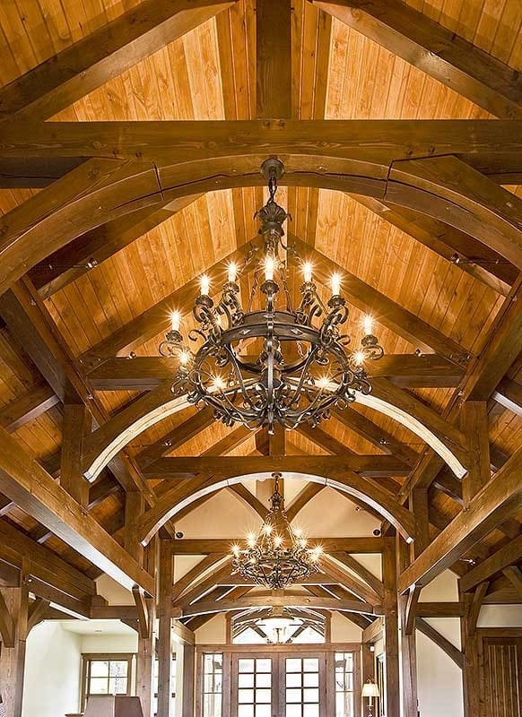 The open layout makes the space feel twice as big, and those soaring vaulted ceilings with exposed timbers?