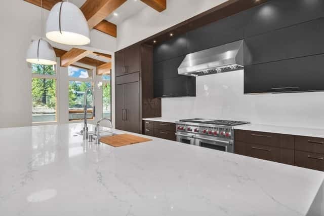 The mix of contemporary glass and stone on the exterior elevates the look without feeling over the top.