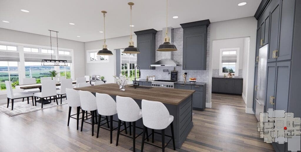 If the great room is the crown, then the kitchen is the heartbeat of this farmhouse.