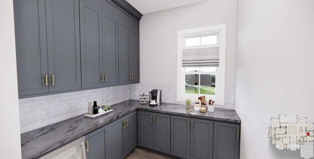 Just steps away is a prep kitchen, keeping the main space free of clutter when you’re entertaining.