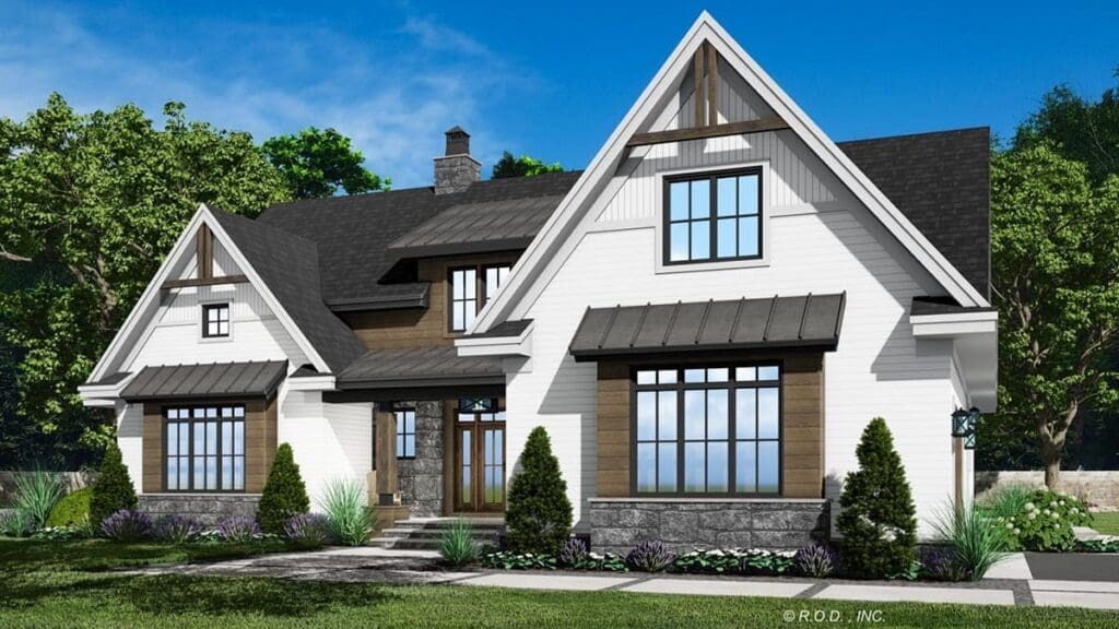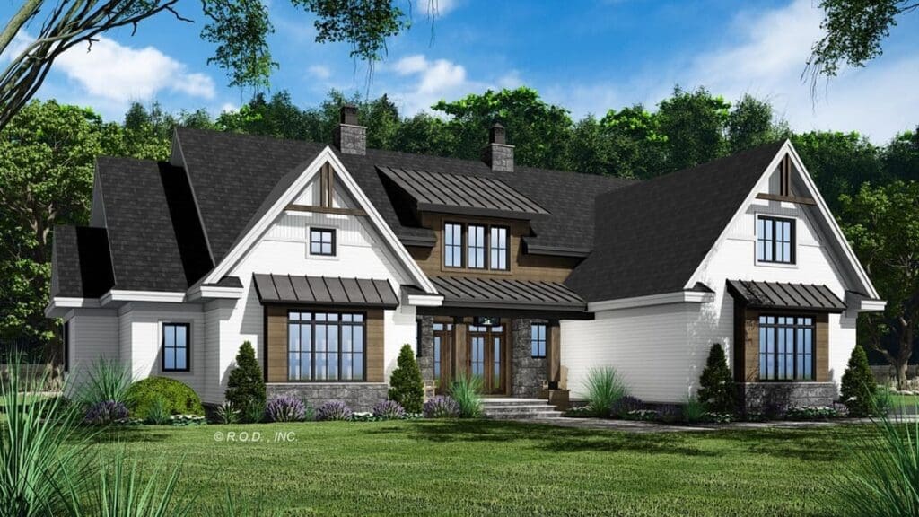 This isn’t just any house plan—it’s a 3,415-square-foot design with all the charm of a farmhouse and all the convenience of modern living.