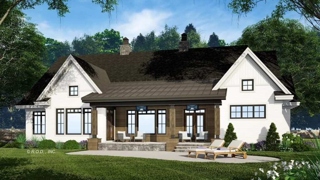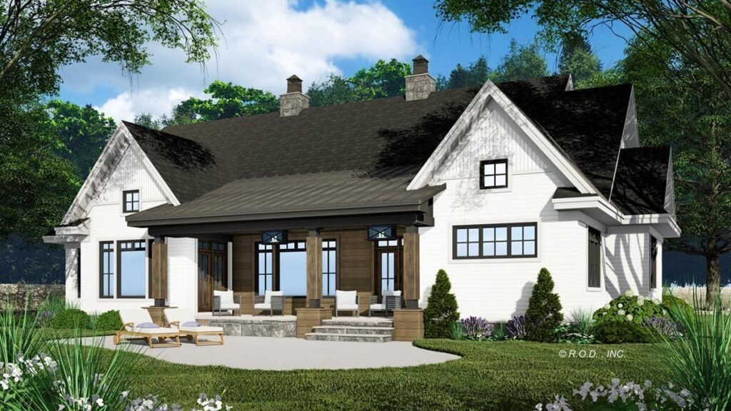 When I stumbled across this modern farmhouse floor plan, I instantly imagined myself sitting on that massive rear porch with coffee in hand, pretending to answer emails while secretly scrolling through vacation ideas.