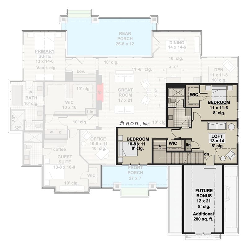 4-Bedroom 2-Story Modern Farmhouse with Home Office and Bonus Expansion (Floor Plan)