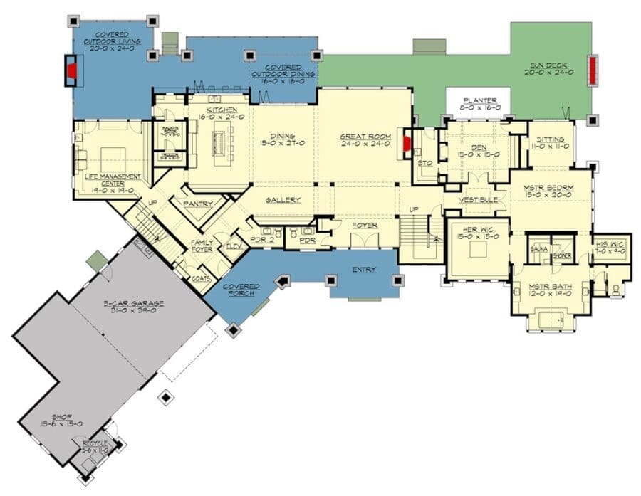 Every inch of this 8,120-square-foot mountain house floor plan has been designed for real-life luxury.