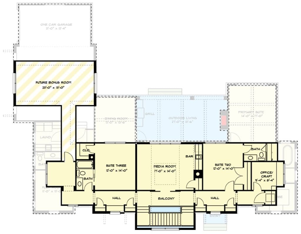 One of the standout features of this plan is the 21′ x 13’6″ outdoor living area.
