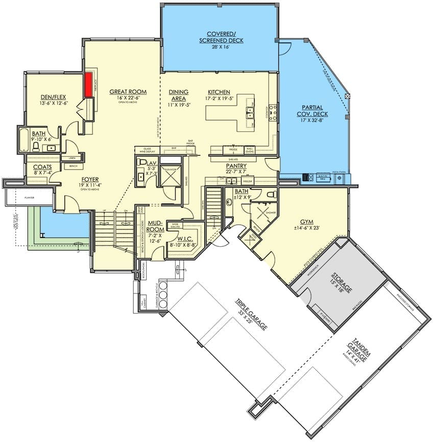 One of the most striking elements of this floor plan is the rear design with stacked decks.