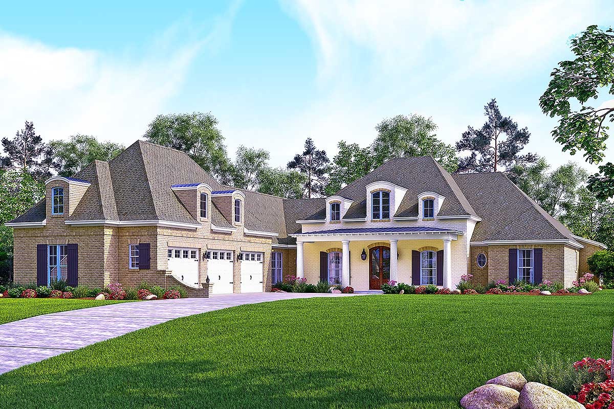 5-Bedroom 1-Story Country-Style Home With Screened Porch and 3-Car Courtyard Garage (Floor Plan)