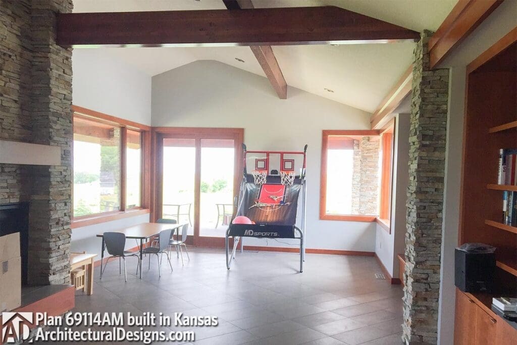 It opens into a bright breakfast nook and a sprawling family/game room that’s ready for movie nights, game days, or just collapsing on the couch after a long Monday.