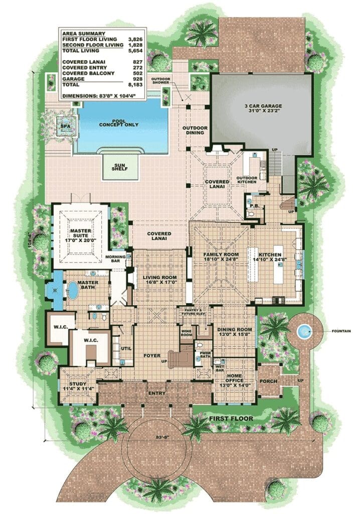 The layout balances private retreats with open social areas, and the flow between indoor and outdoor living is seamless.