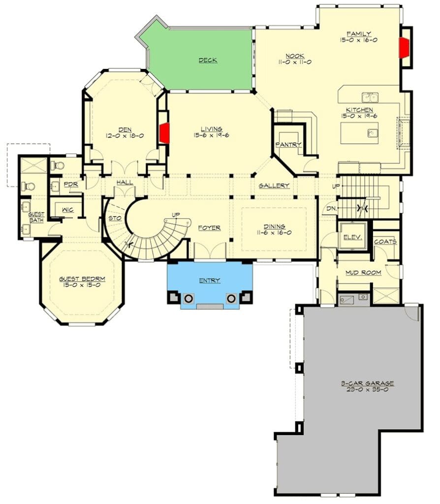 For guests or extended family, the octagon-shaped bedroom on the main floor feels more like a private retreat.