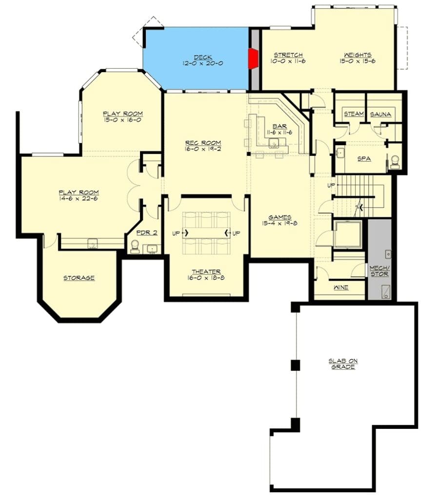 A playroom, media room, wet bar with seating for four, spa, exercise room, and even a wine cellar—it’s basically a private resort under your own roof.
