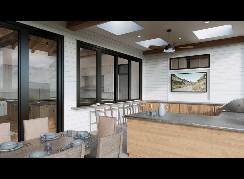 The covered outdoor living space stretches 16’ by 48’, offering plenty of room for lounging, dining, or binge-watching under the stars (hello, best home security system with outdoor cameras!).