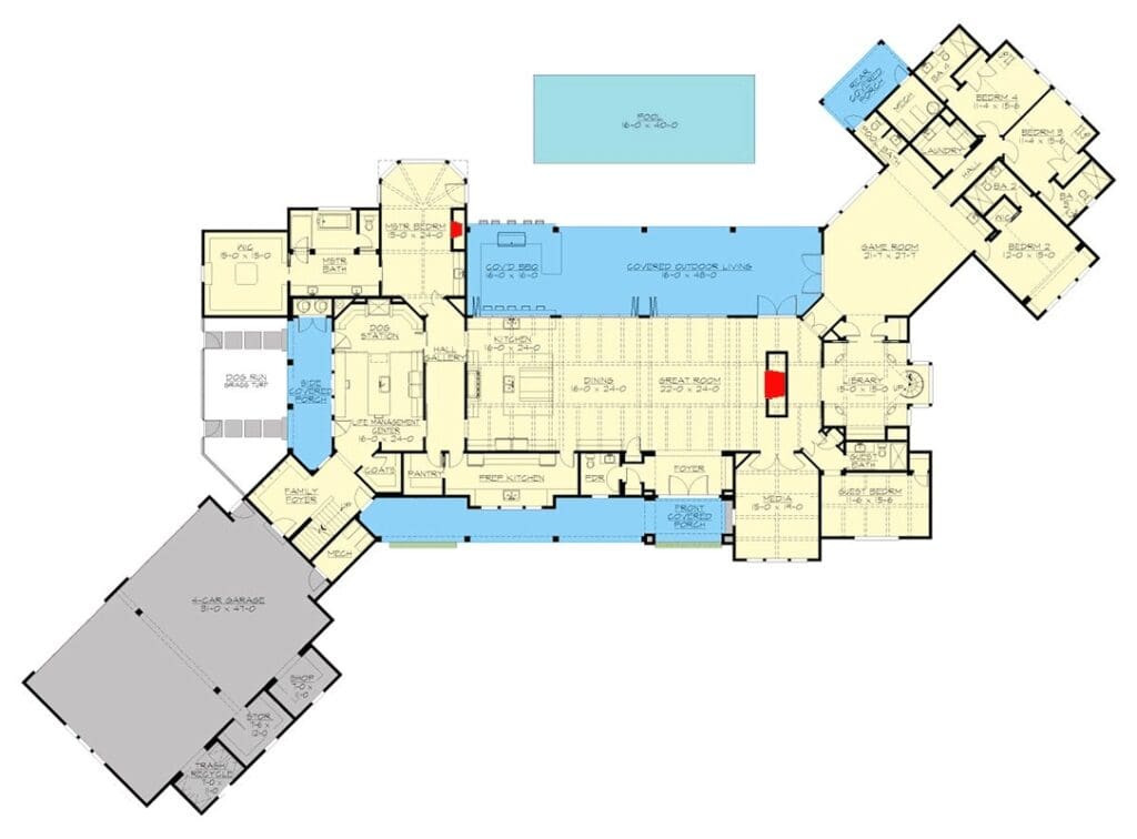If you’ve ever fantasized about sipping wine by the outdoor fireplace while watching the kids splash in the pool, this plan checks all the boxes.