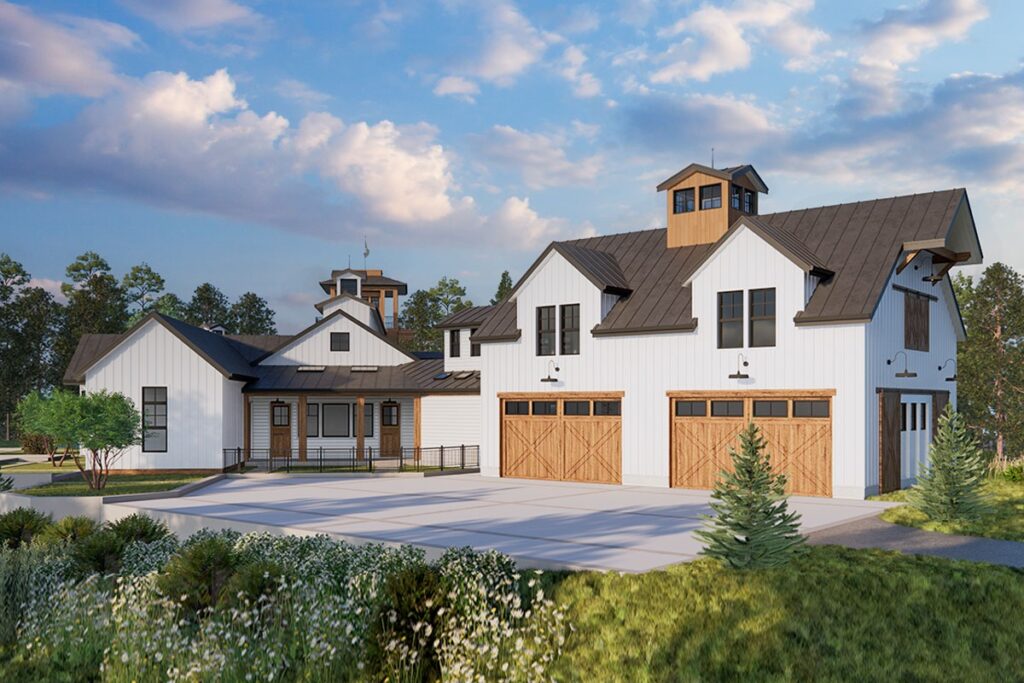 This luxury modern farmhouse plan falls squarely in the latter category.