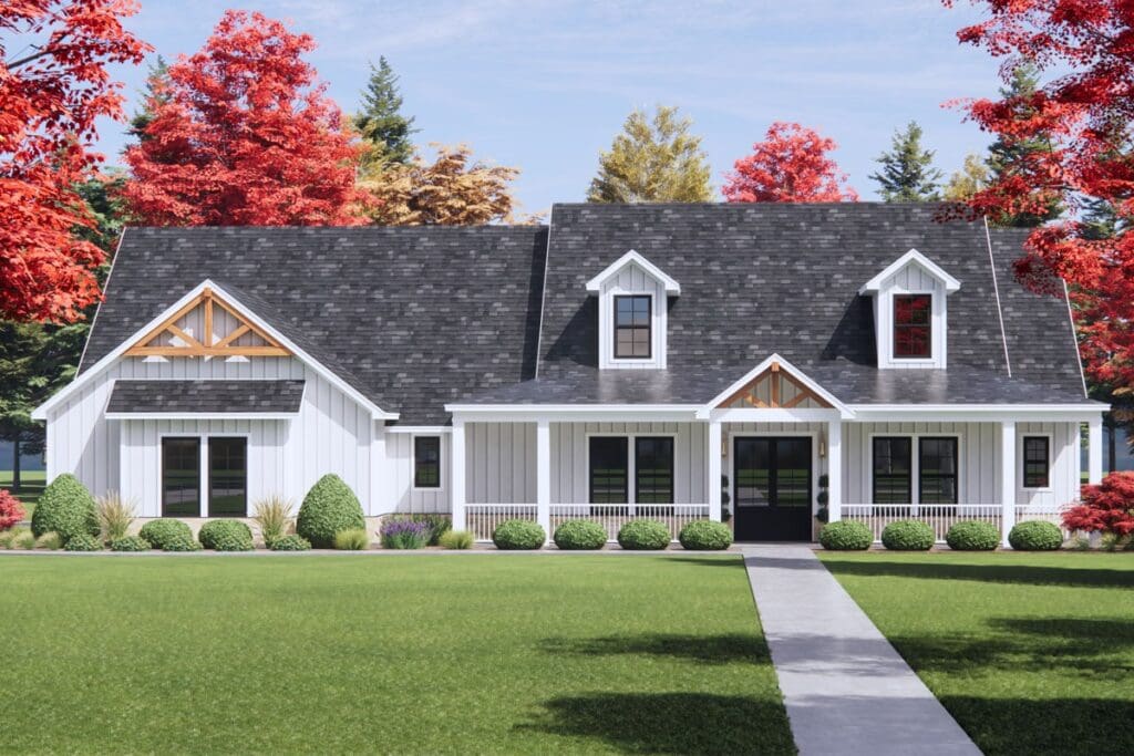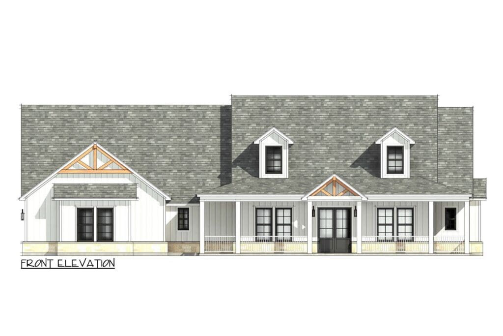 So here it is: a 4-to-5-bedroom, 3.5-bathroom modern farmhouse with porches for days, an open floor plan you’ll actually use, and smart features that make life smoother.