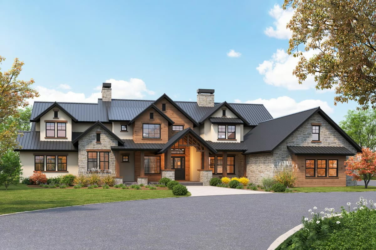 With over 6,500 square feet, 6 beds, and more bathrooms than you’ll ever admit needing, this plan is where elegance meets livability—with a twist of rustic charm.