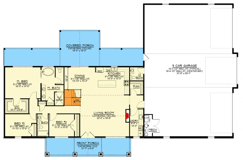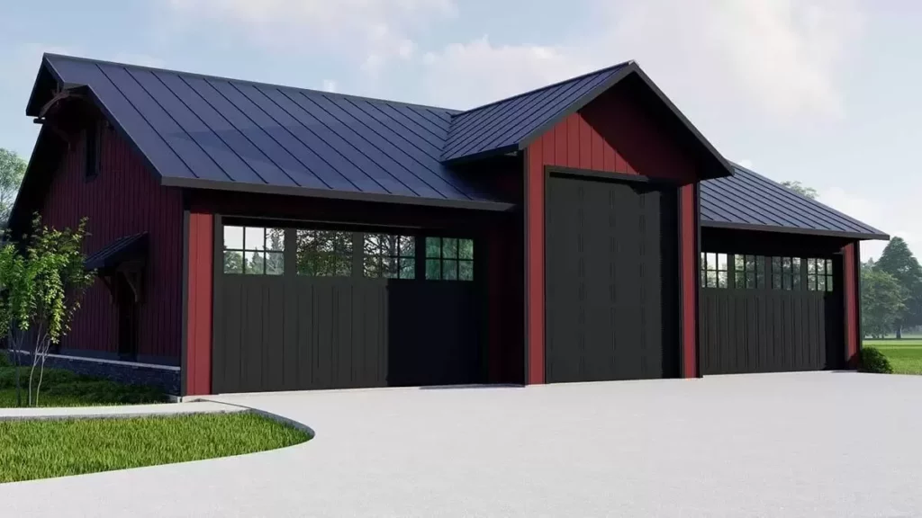 Barn-Inspired 3-Bedroom 1-Story Country Home with 5-Bay Garage (Floor Plan)