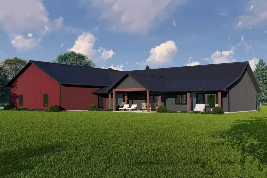 With corrugated metal siding and a shape inspired by classic American barns, this home blends nostalgia with sleek, rustic character.