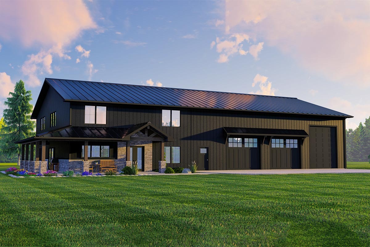 Dual-Story 3-Bedroom Barndominium House with Oversized Shop (Floor Plan)
