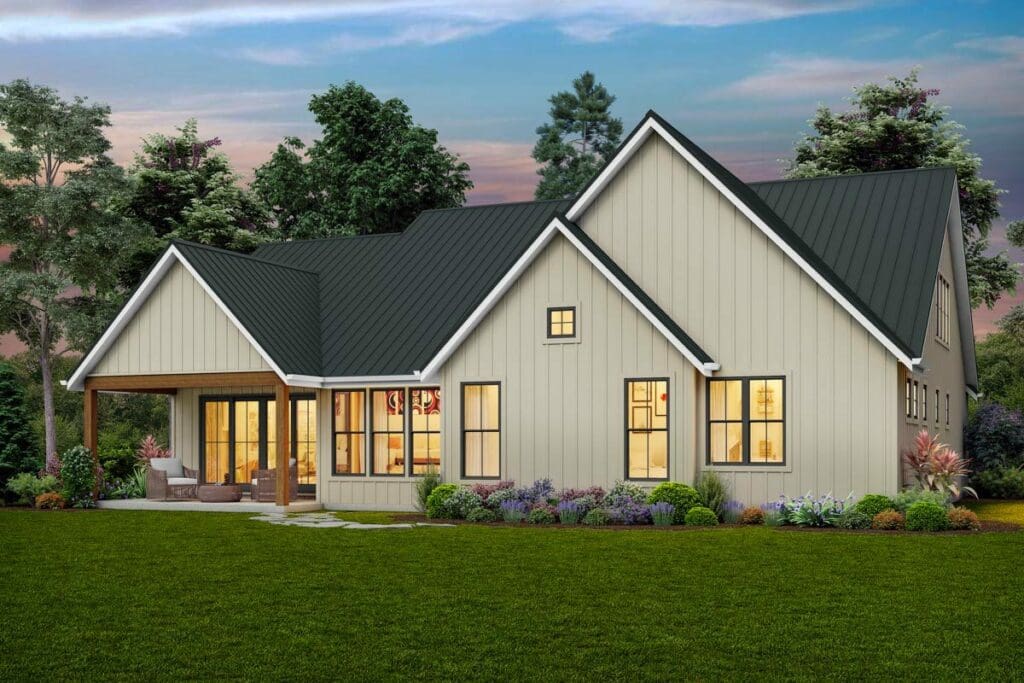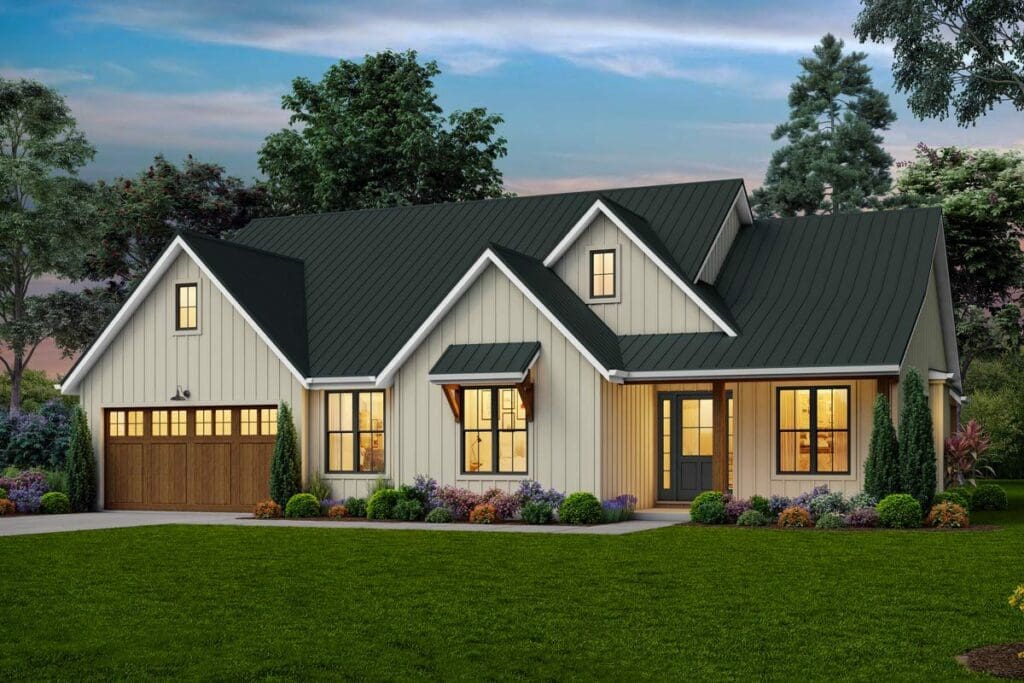 We’re talking board and batten siding that delivers that perfect touch of rustic elegance, paired with sleek standing seam metal roofing that whispers, “Hey, I’m stylish and sturdy.” The wood accents?