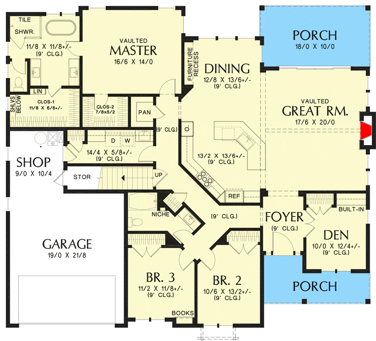Dual-Story 4-Bedroom Modern Farmhouse with Vaulted Great Room (Floor Plan)