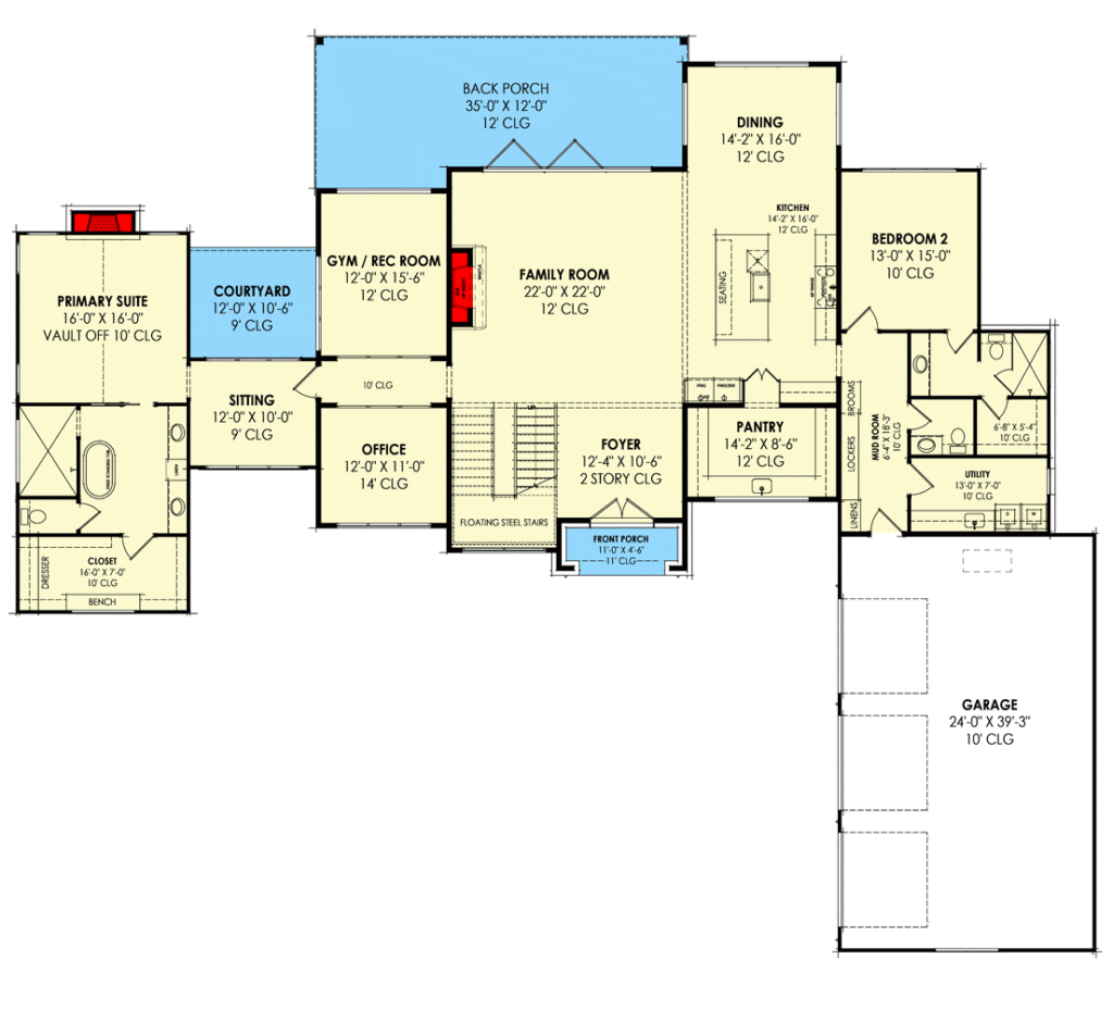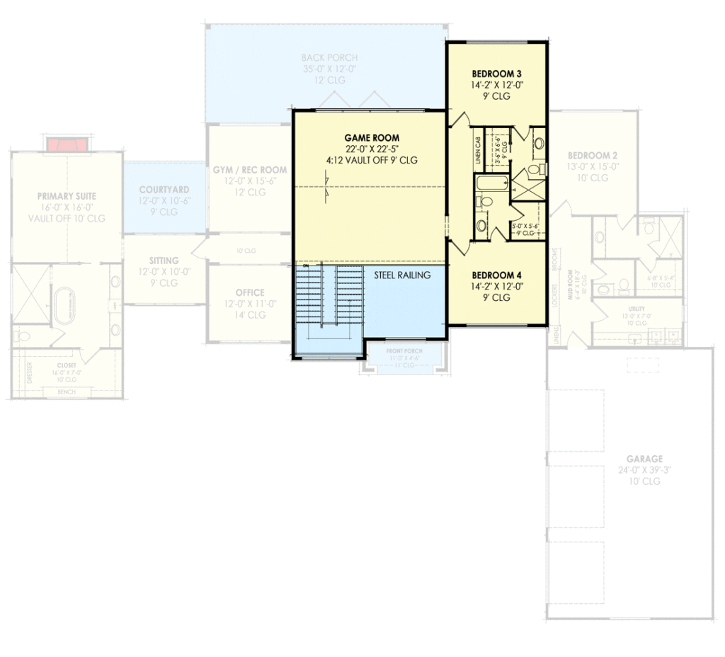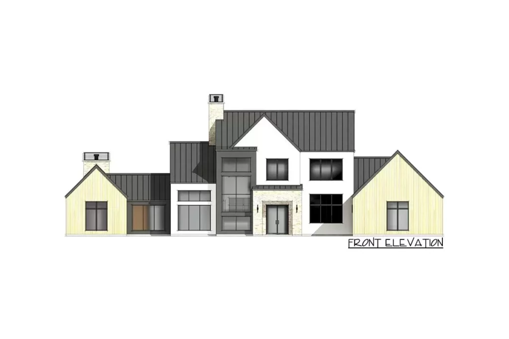 So whether you’re gearing up to buy your first forever home, planning to refinance your mortgage down the road, or just swooning over the idea of floating stairs and a vaulted game room, this transitional house plan offers it all.