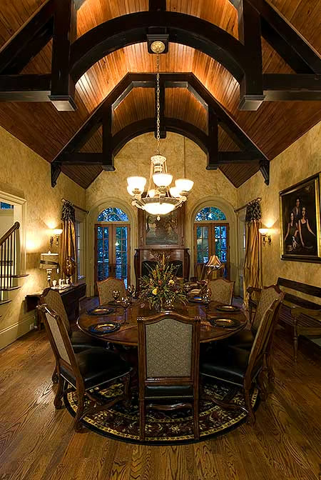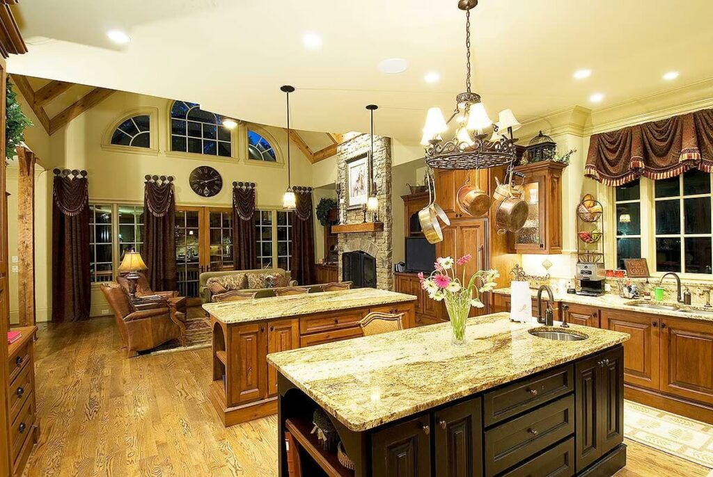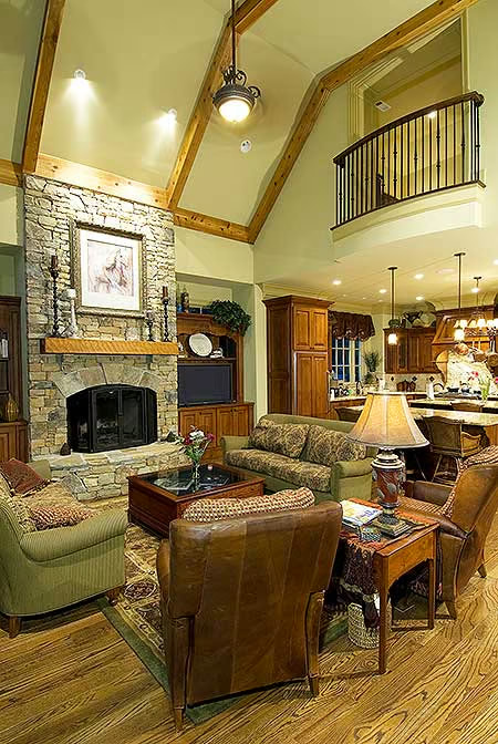 High vaulted ceilings give it a touch of drama, but the layout keeps it warm and inviting.