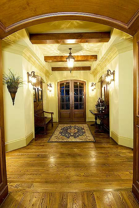 First off, there’s a tray ceiling so gorgeous it deserves its own chandelier.